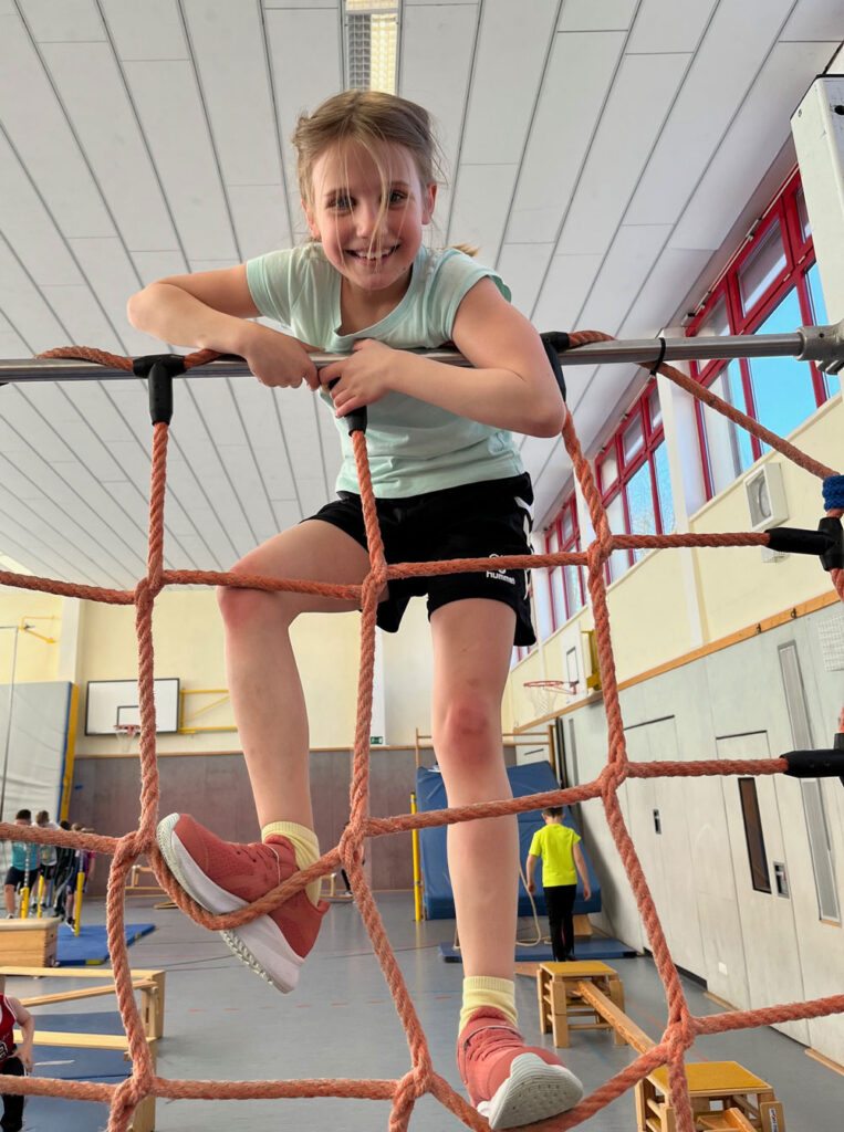 Wer es geschafft hat, klettert stolz auf der anderen Seite wieder hinunter – und nimmt ein gutes Stück Selbstvertrauen mit. In der gesamten letzten Schulwoche vor den Osterferien dürfen sich die Kinder in ihren Sportstunden auf diesem abwechslungsreichen Parcours ausprobieren. Mit roten Wangen, verschwitzt, aber glücklich, machen sie sich anschließend wieder auf den Weg zurück ins Schulhaus.