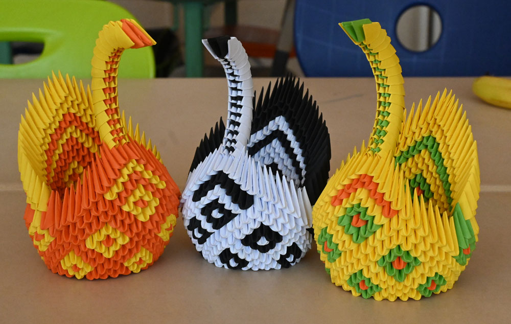 Für einen klassischen 3D-Origami-Schwan werden über 400 einzelne Bauteile genannt benötigt – eine beeindruckende Zahl, die viel Ausdauer und Konzentration erfordert. Schritt für Schritt setzten die Kinder die kleinen Teile zusammen und konnten so miterleben, wie ihre Schwäne langsam Form annahmen.